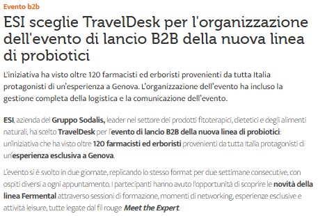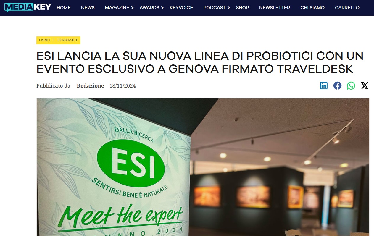Media Key – ESI lancia la sua nuova linea di probiotici con un evento esclusivo a Genova firmato TravelDesk