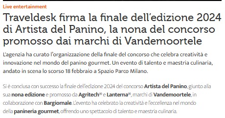 TravelDesk organizza la semifinale di Artista del Panino 2024: Genova ospita l’evento Vandermoortele