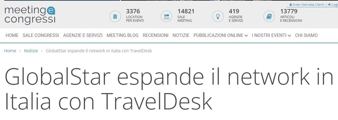 Meeting e Congressi – GlobalStar espande il network in Italia con TravelDesk